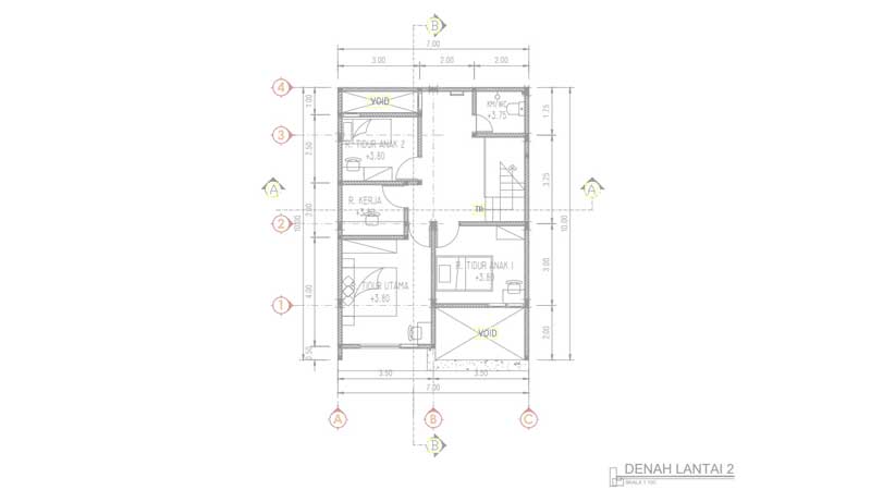 Denah Rumah 7X10 Meter, 2 Lantai